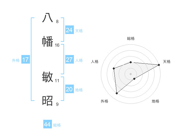 八幡 敏昭さんの外格は17画の4点!