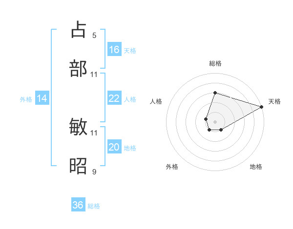 占部 敏昭さんを姓名の画数から五運を鑑定