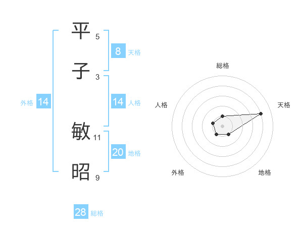 平子 敏昭さんを姓名の画数から五運を鑑定