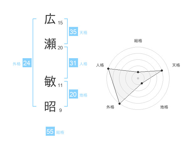 広瀬 敏昭さんの天格は35画の4点!
