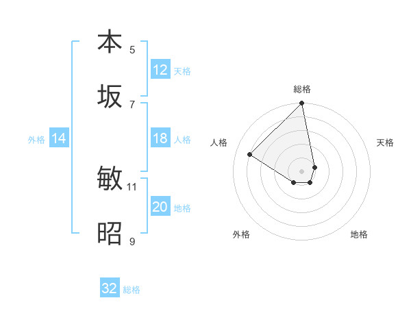 本坂 敏昭さんの総格は32画の5点!