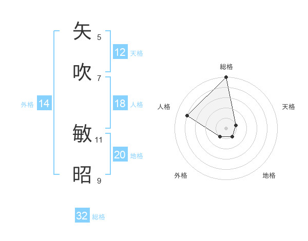 矢吹 敏昭さんの総格は32画の5点!
