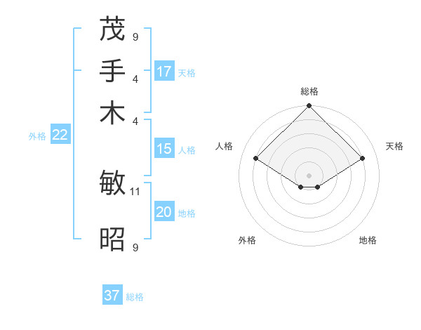 茂手木 敏昭さんを姓名の画数から五運を鑑定