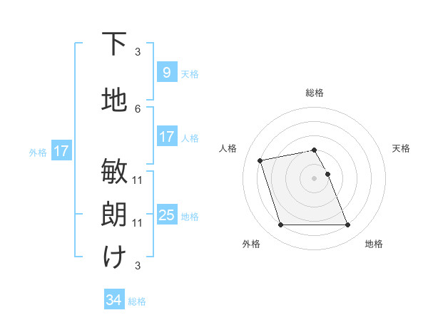 下地 敏朗けさんの総格は34画の2点