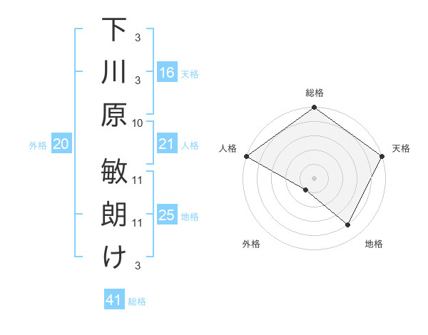 下川原 敏朗けさんを姓名の画数から五運を鑑定