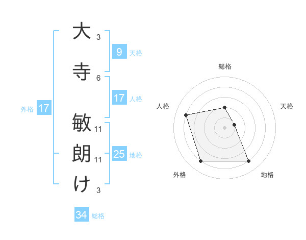 大寺 敏朗けさんを姓名の画数から五運を鑑定