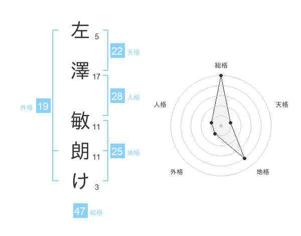 左澤 敏朗けさんを姓名の画数から五運を鑑定