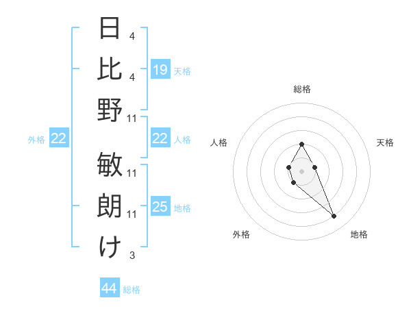 日比野 敏朗けさんを姓名の画数から五運を鑑定