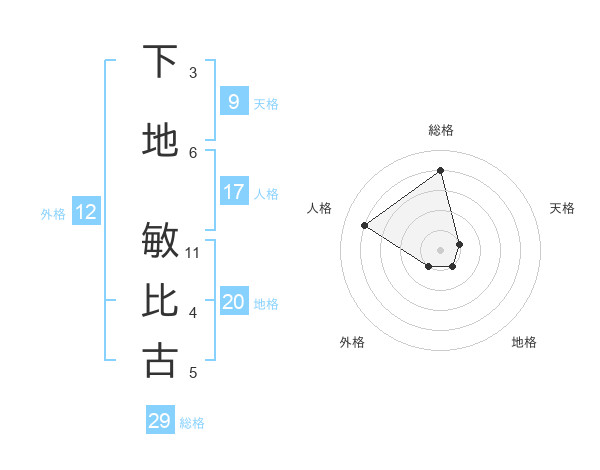 下地 敏比古さんを姓名の画数から五運を鑑定