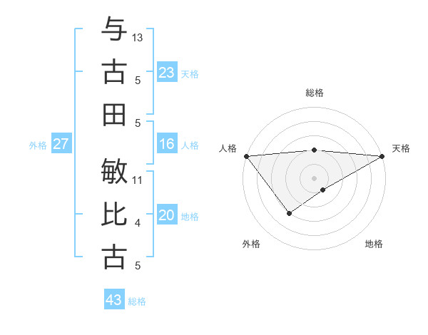 与古田 敏比古さんを姓名の画数から五運を鑑定