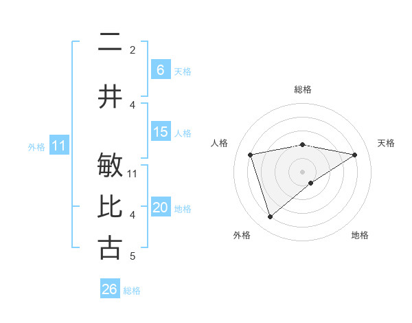 二井 敏比古さんの総格は26画の2点!