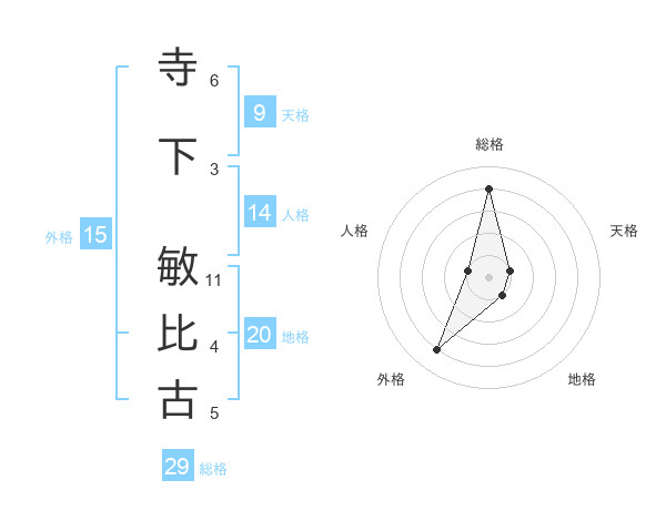 寺下 敏比古さんの総格は29画の4点!