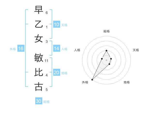 早乙女 敏比古さんを姓名の画数から五運を鑑定