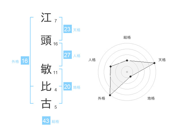 江頭 敏比古さんを姓名の画数から五運を鑑定