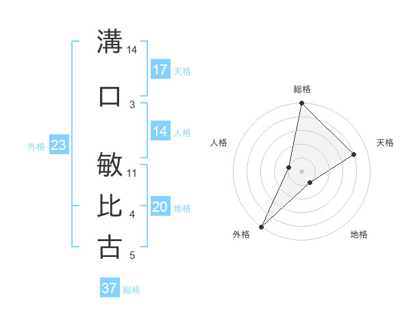 溝口 敏比古さんの総格は37画の5点!