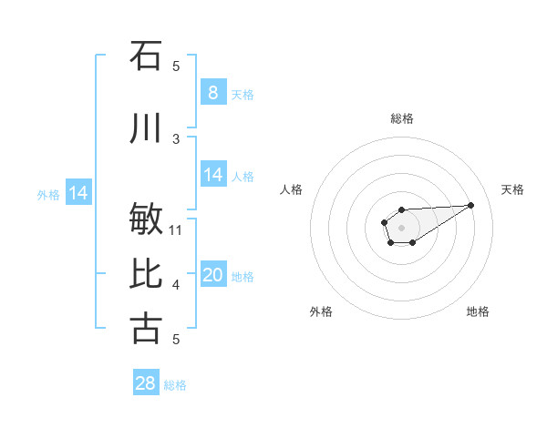 石川 敏比古さんを姓名の画数から五運を鑑定