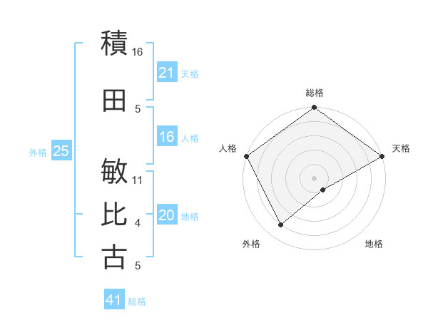 積田 敏比古さんを姓名の画数から五運を鑑定