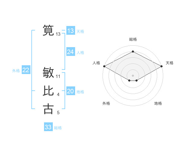 筧 敏比古さんの総格は33画の4点!