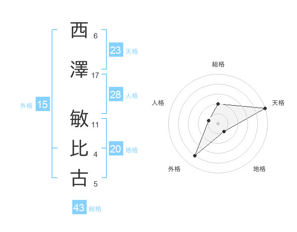 西澤 敏比古さんの天格は23画の5点!