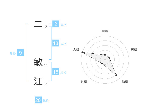 二 敏江さんの総格は20画の1点!