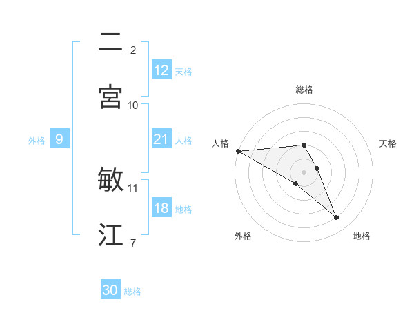 二宮 敏江さんを姓名の画数から五運を鑑定