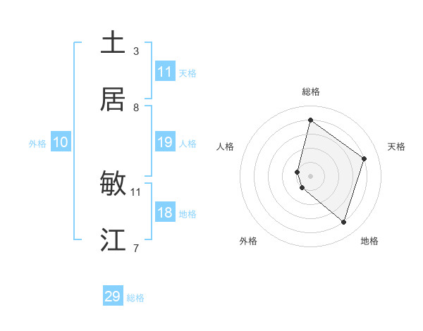 土居 敏江さんの総格は29画の4点!