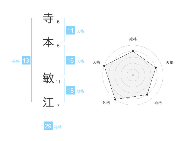 寺本 敏江さんの外格は13画の5点!