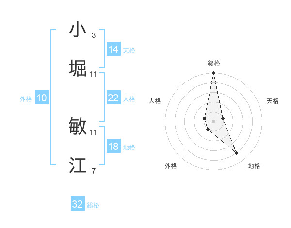 小堀 敏江さんの総格は32画の5点!