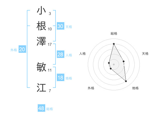 小根澤 敏江さんを姓名の画数から五運を鑑定