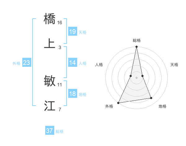 橋上 敏江さんを姓名の画数から五運を鑑定