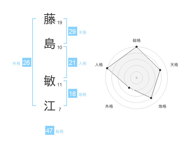 藤島 敏江さんの総格は47画の5点!