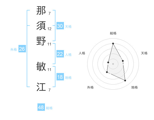 那須野 敏江さんの総格は48画の4点!