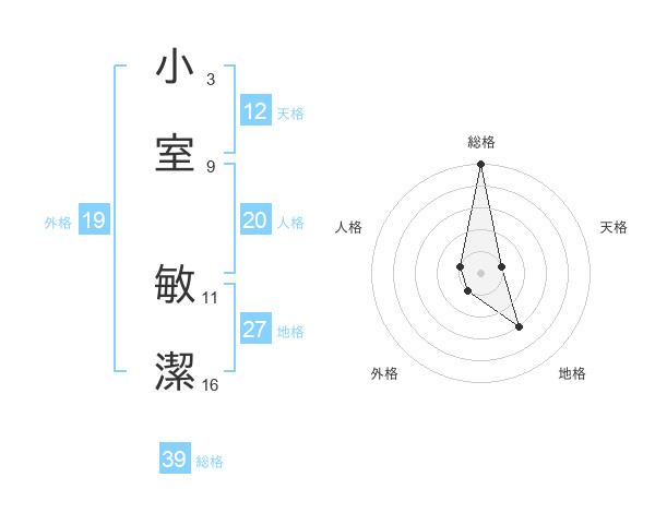 小室 敏潔さんの総格は39画の5点!