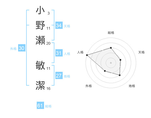 小野瀬 敏潔さんを姓名の画数から五運を鑑定
