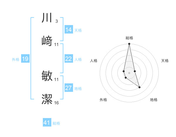 川﨑 敏潔さんの総格は41画の5点!