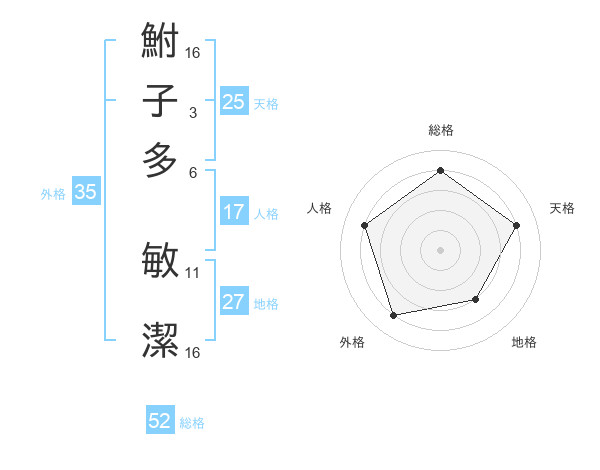 鮒子多 敏潔さんを姓名の画数から五運を鑑定