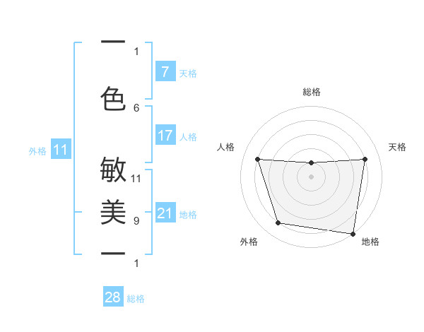 一色 敏美一さんを姓名の画数から五運を鑑定