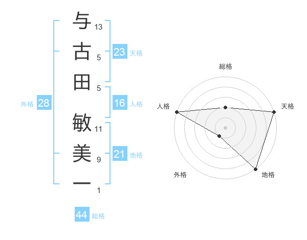 与古田 敏美一さんを姓名の画数から五運を鑑定