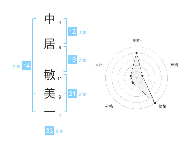 中居 敏美一さんを姓名の画数から五運を鑑定