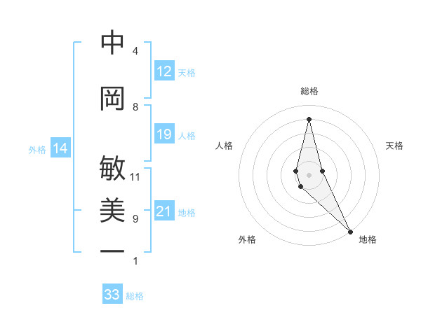 中岡 敏美一さんを姓名の画数から五運を鑑定