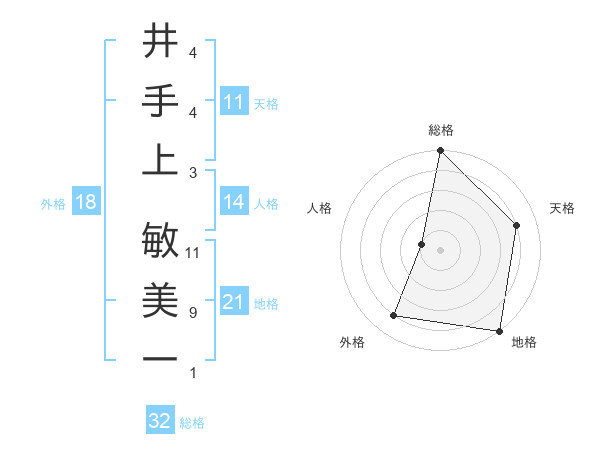 井手上 敏美一さんを姓名の画数から五運を鑑定