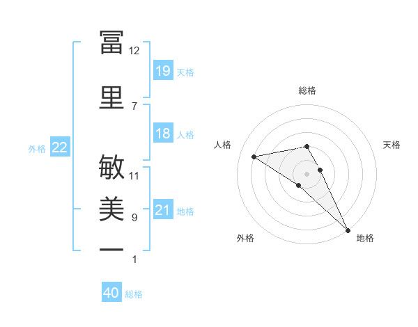 冨里 敏美一さんの地格は21画の5点!