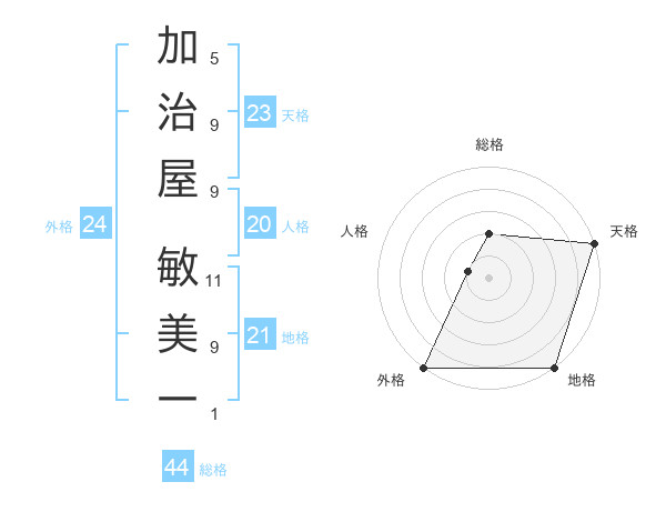 加治屋 敏美一さんの外格は24画の5点