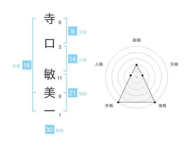 寺口 敏美一さんの総格は30画の2点!