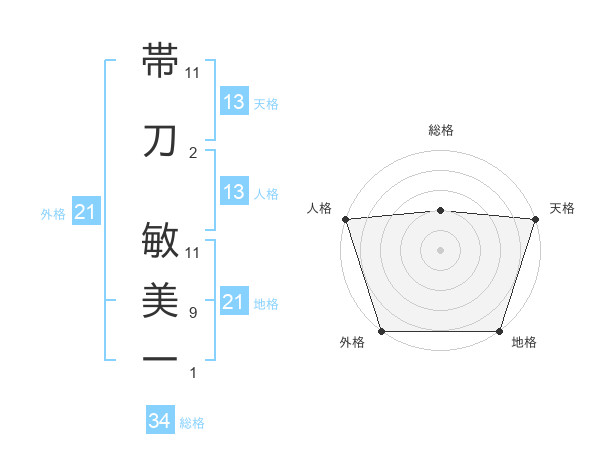 帯刀 敏美一さんを姓名の画数から五運を鑑定