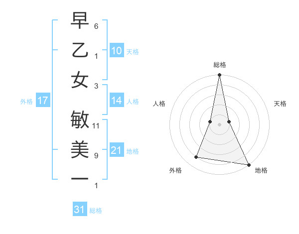 早乙女 敏美一さんを姓名の画数から五運を鑑定