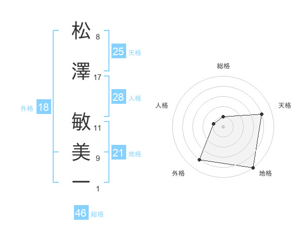 松澤 敏美一さんを姓名の画数から五運を鑑定