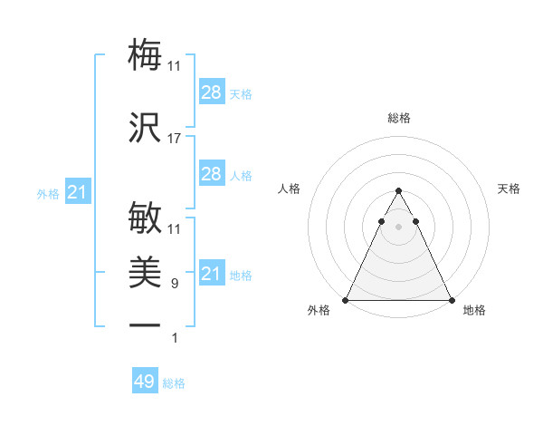 梅沢 敏美一さんの総格は49画の2点!