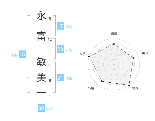 永富 敏美一さんを姓名の画数から五運を鑑定