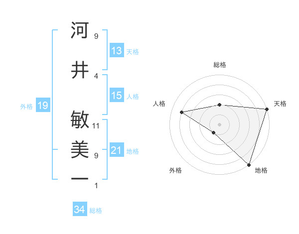 河井 敏美一さんを姓名の画数から五運を鑑定
